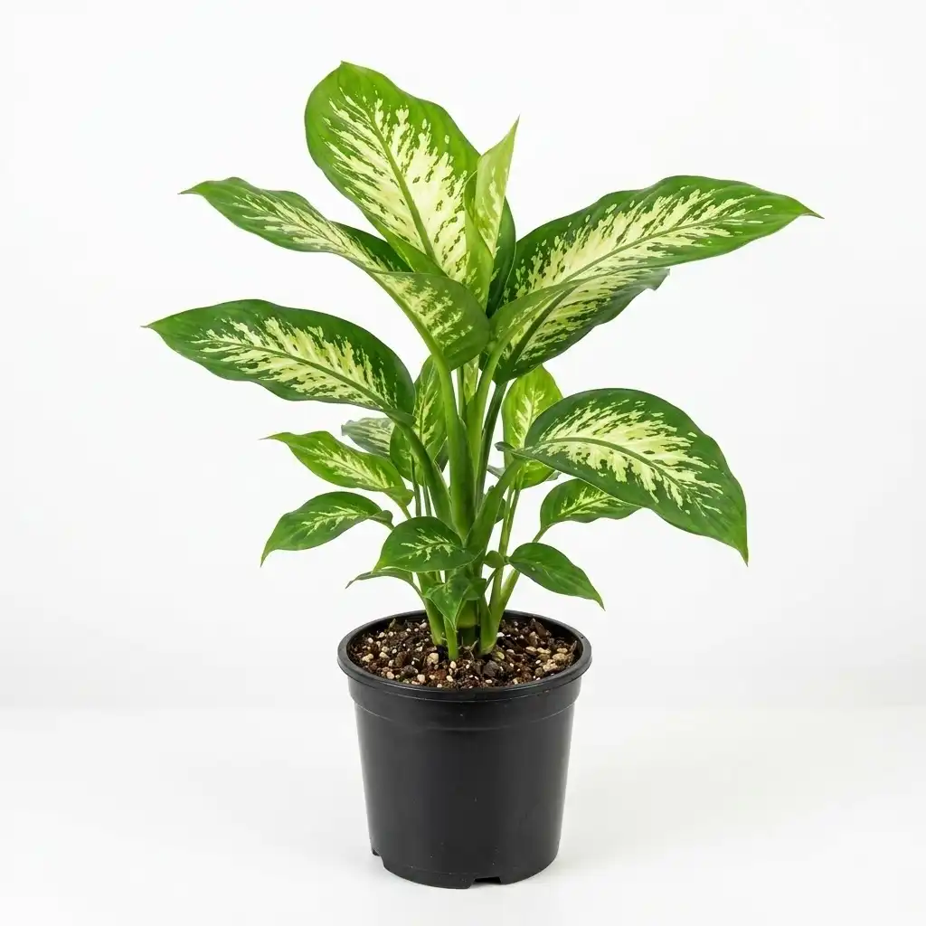 A popular indoor plant known for its broad decorative leaves with green and creamy variegation. It adds a lush tropical look to homes and offices and is relatively easy to care for in moderate indoor lighting.